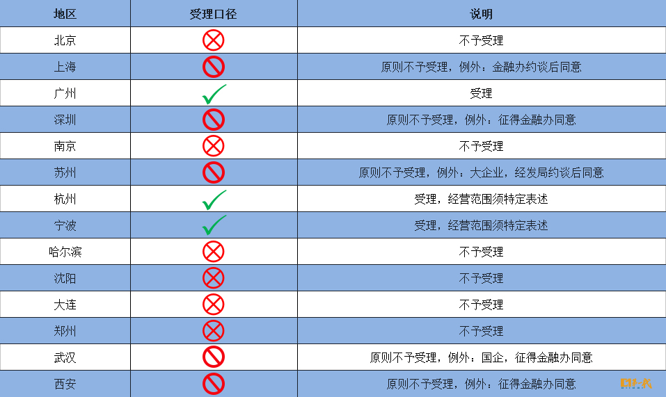 各主要城市工商机关对于投资类企业注册登记的最新管理口径