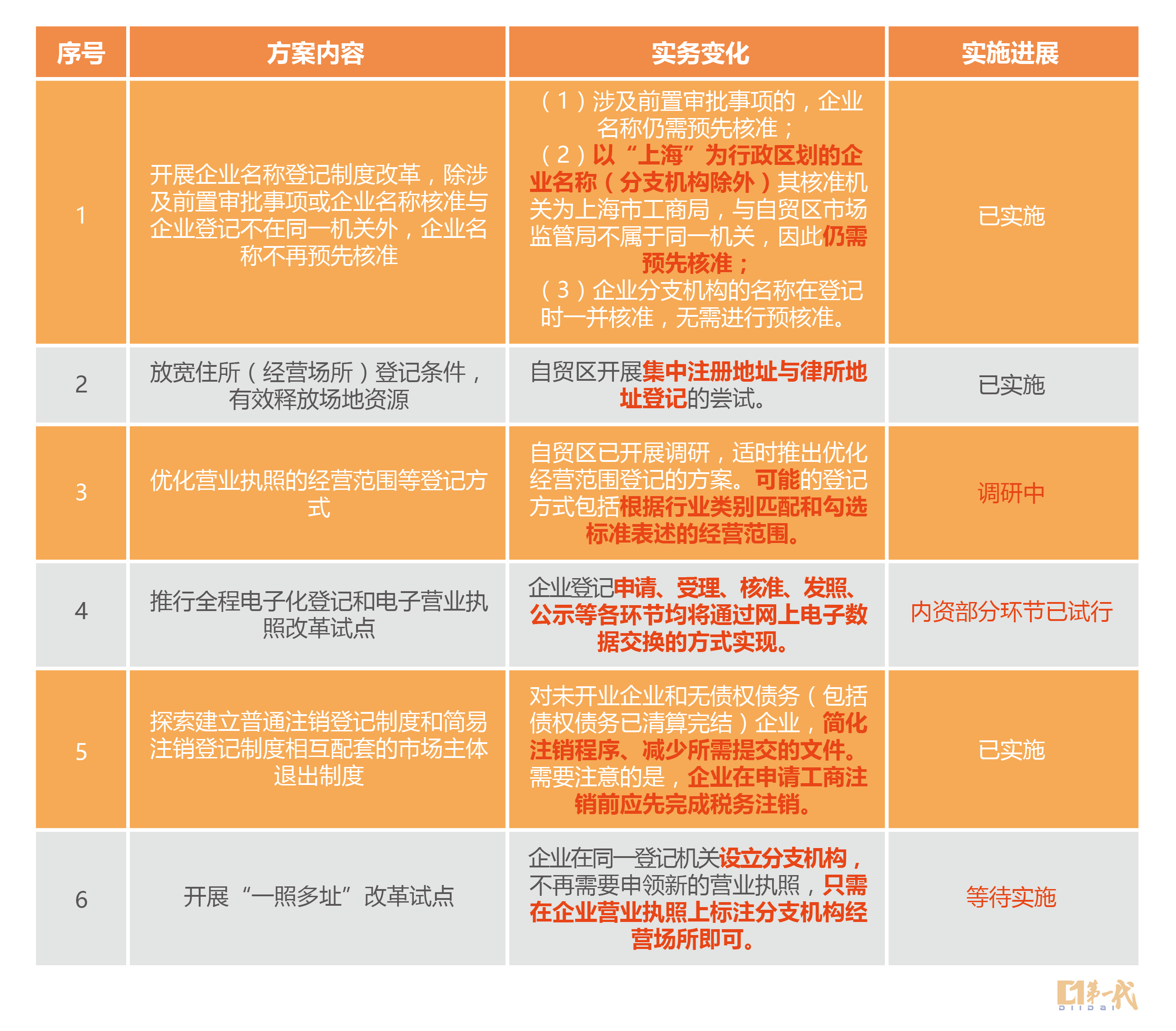 从上表不难看出,国务院方案中提到的改革举措,部分已经开始实施,部分还有待配套落地,部分还在调研之中。第一代将持续跟进改革进程,第一时间与大家分享最新实务变化。