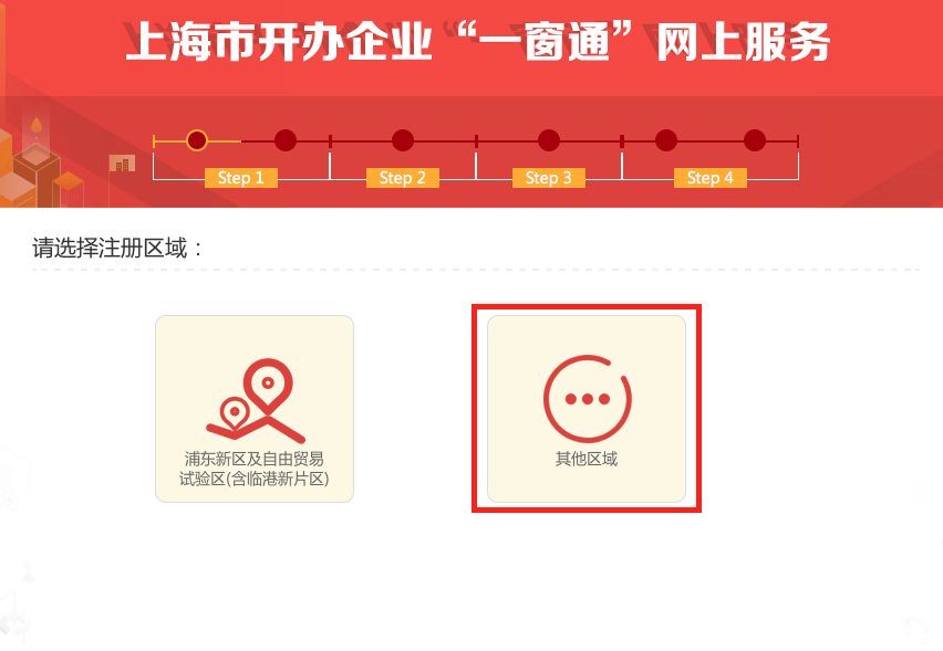 3. 浦东新区和自贸试验区、临港新片区的企业,也可以按照老方式进行名称申报,在系统中选择“其他区域”即可(见下图)。